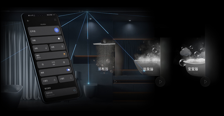 TFT智慧屏預(yù)設(shè)瀑布浴、溫泉浴、寶寶浴三大場(chǎng)景。