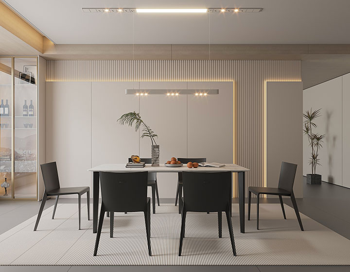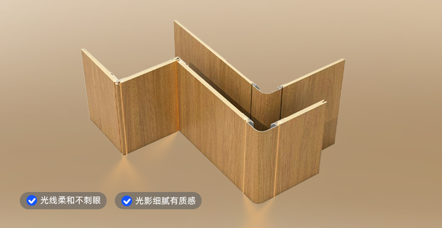 取消傳統(tǒng)燈槽型材依賴,運用燈條直卡式安裝技術,打造隱藏式光源,避免直射炫光與燈珠陰影。