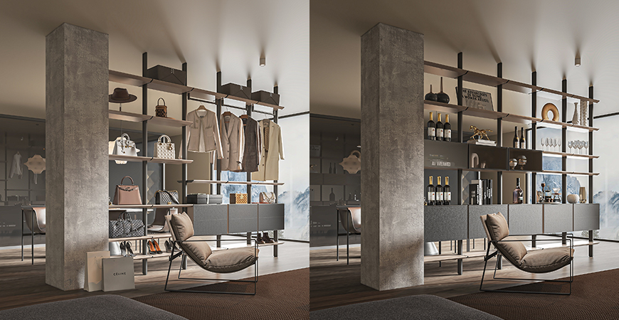 獨立立柱固定,簡約實現(xiàn)收納藝術