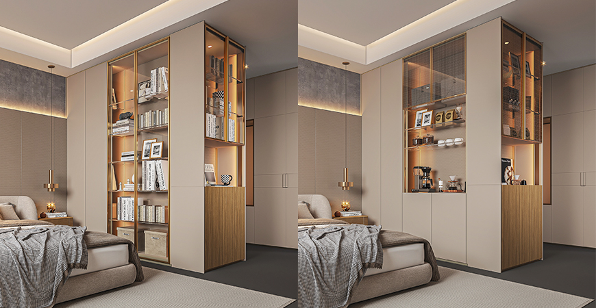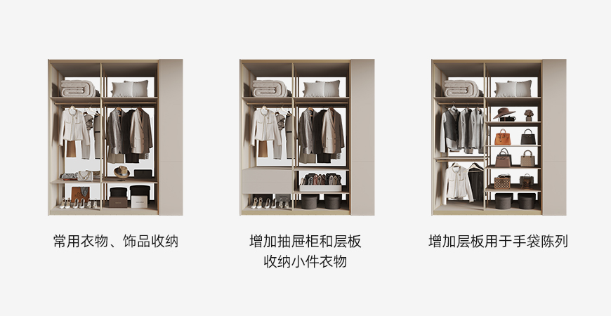 支持衣柜、書柜、酒柜、餐邊柜、展示柜等多種功能切換,滿足不同生活場景。